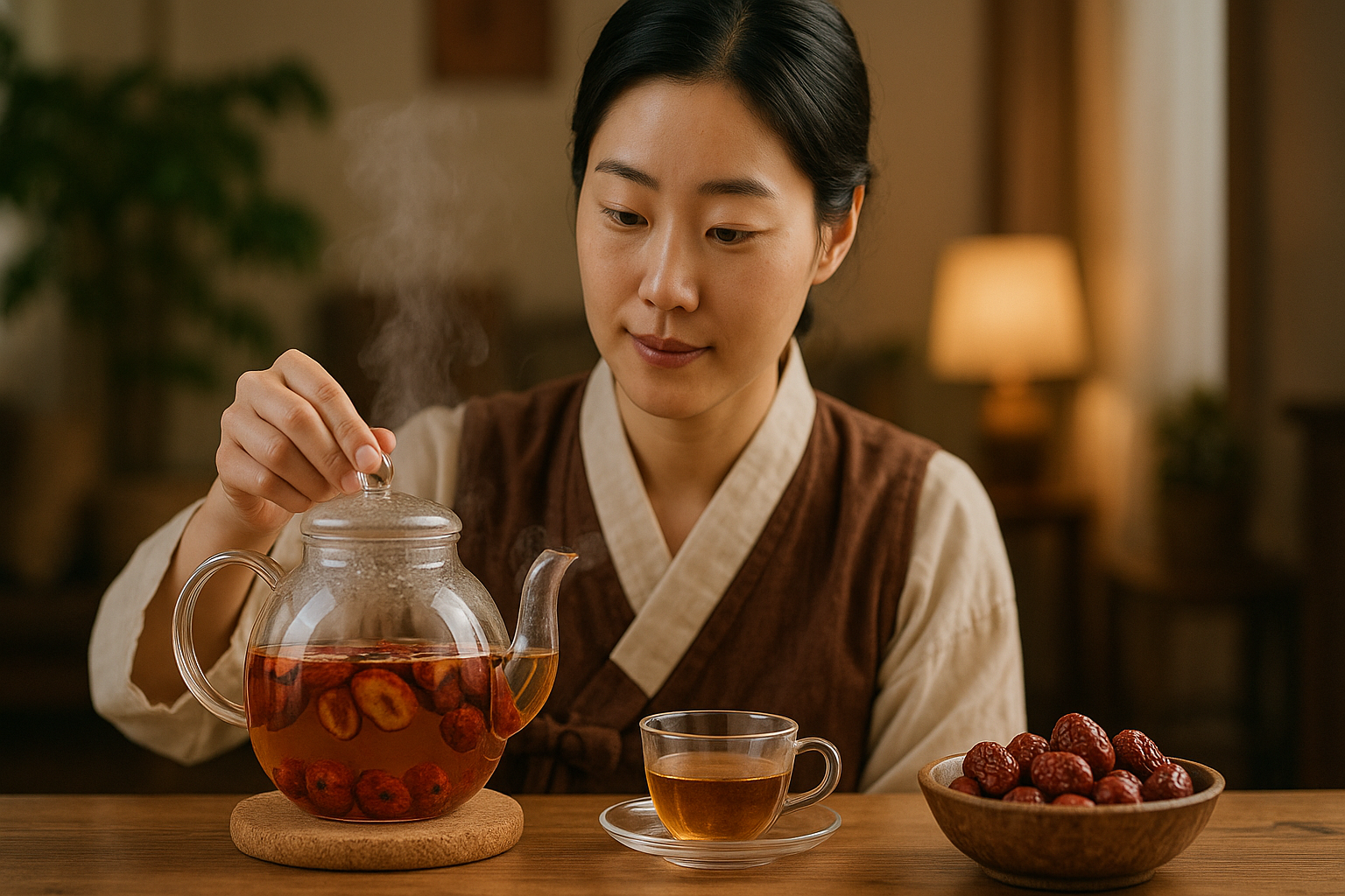 달콤한 향과 부드러운 맛이 마음을 편안하게 해주는 데 한몫합니다. 실제로 대추를 끓여 마시는 것이 마음을 가라앉히고 숙면을 유도하는 데에 도움이 될 수 있다는 이야기도 전해져 내려오죠.