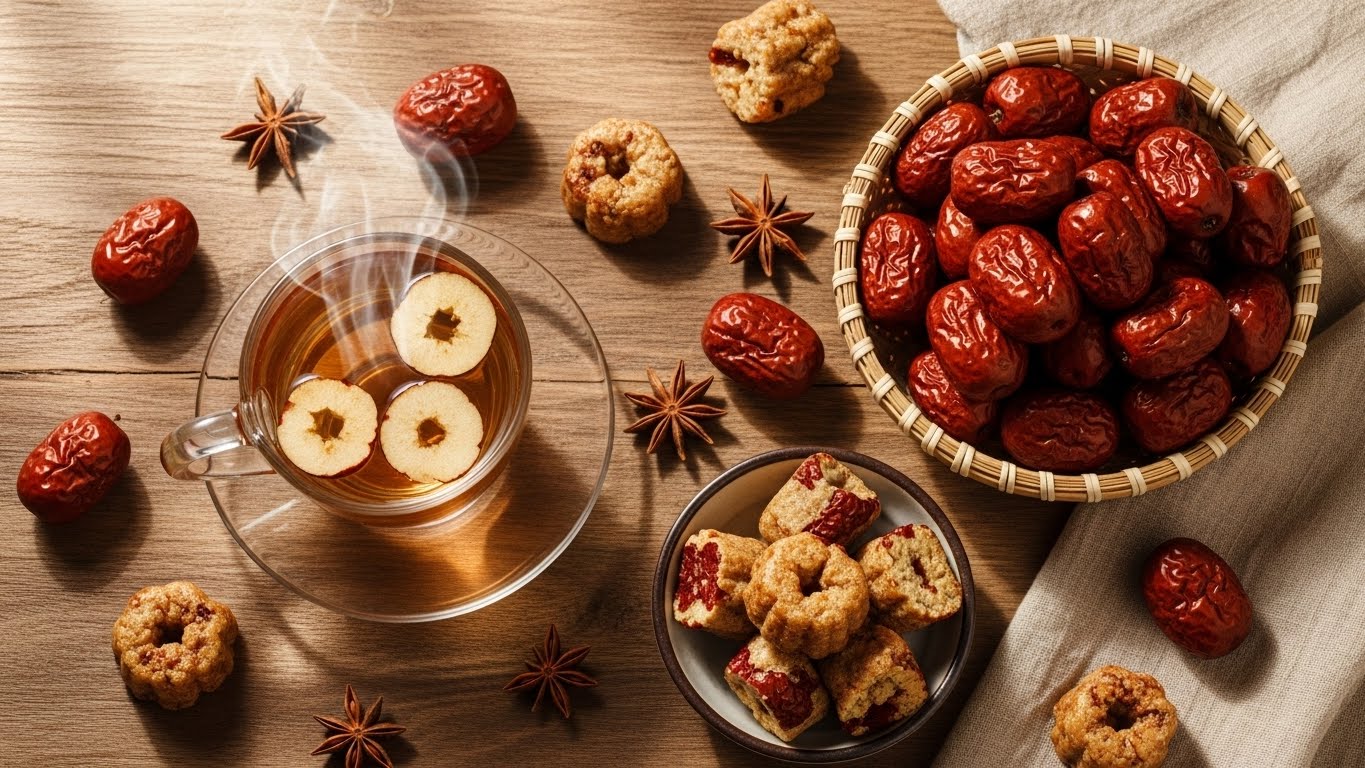 기운이 부족할 때 대추차 한 잔 마시면 몸이 조금씩 풀리는 느낌, 받아보신 적 있나요? 대추는 예로부터 ‘보약을 도와주는 보조재료’로도 많이 쓰였는데요. 전반적인 활력을 북돋는 데에 긍정적인 영향을 줄 수 있어요.