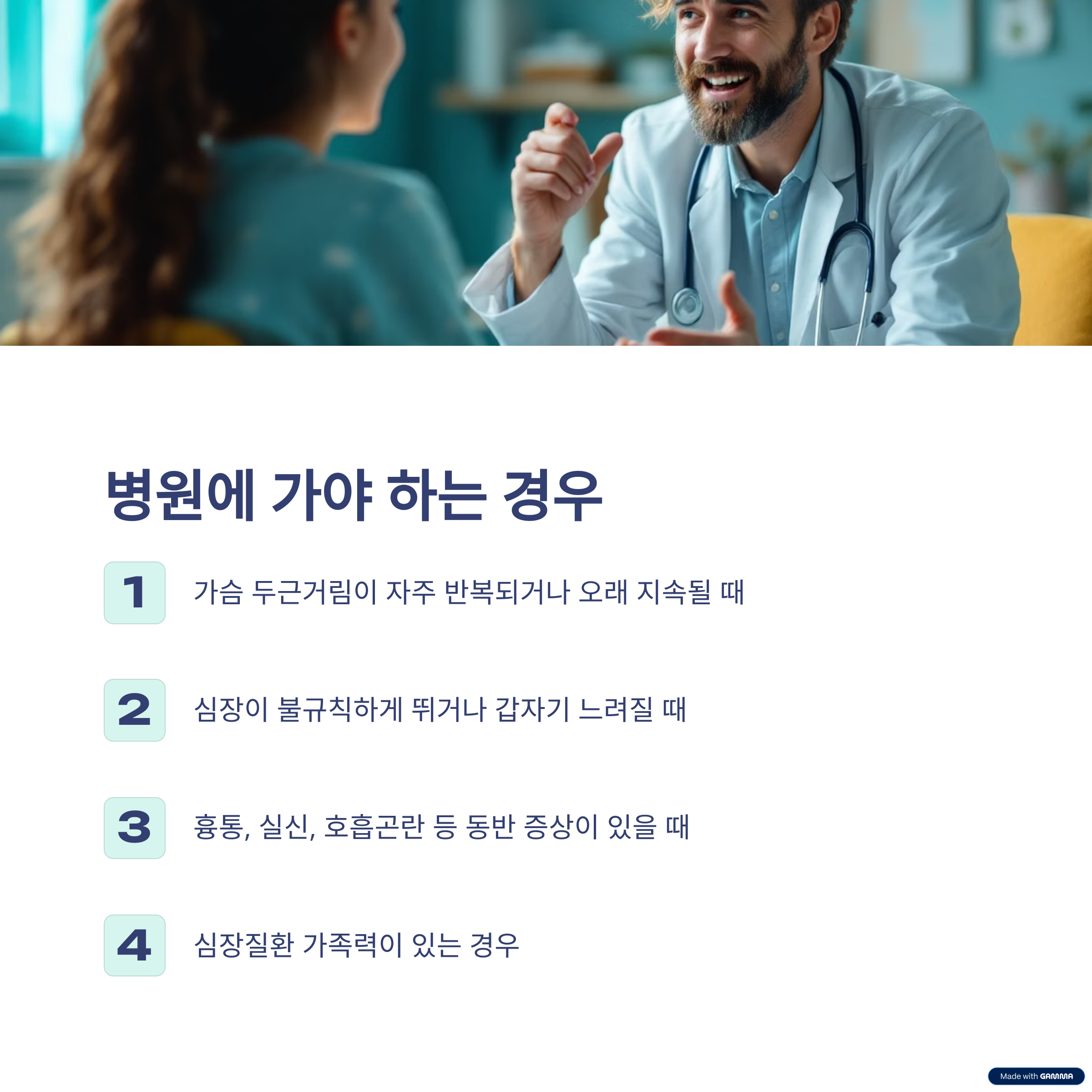 - 가슴 두근거림이 자주 반복되거나 오래 지속될 때