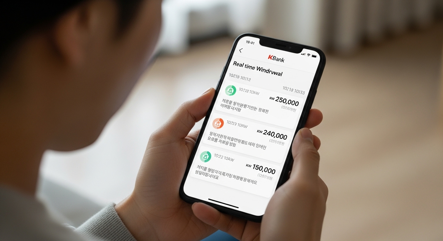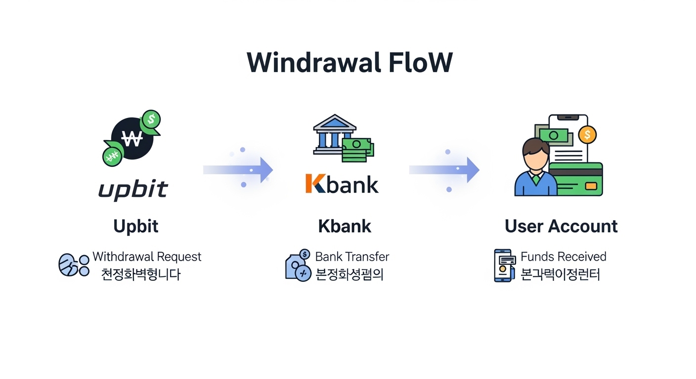 A. 원화 출금은 일반적으로 1~5분 내 케이뱅크로 실시간 입금됩니다. 단, 점검 시간대나 은행 이슈 시 지연될 수 있어요.