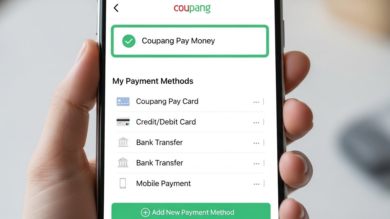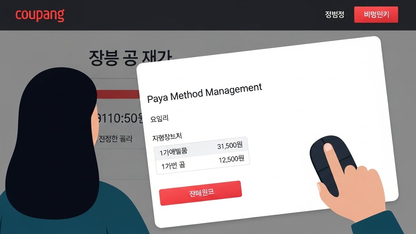 - 상단 메뉴에서 ‘마이쿠팡’ → ‘결제수단 관리’ 클릭