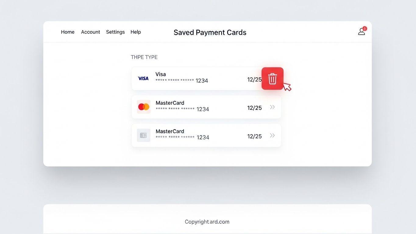 등록된 결제카드는 쿠팡 앱 또는 웹사이트의 '결제수단 관리' 메뉴에서 삭제할 수 있어요.